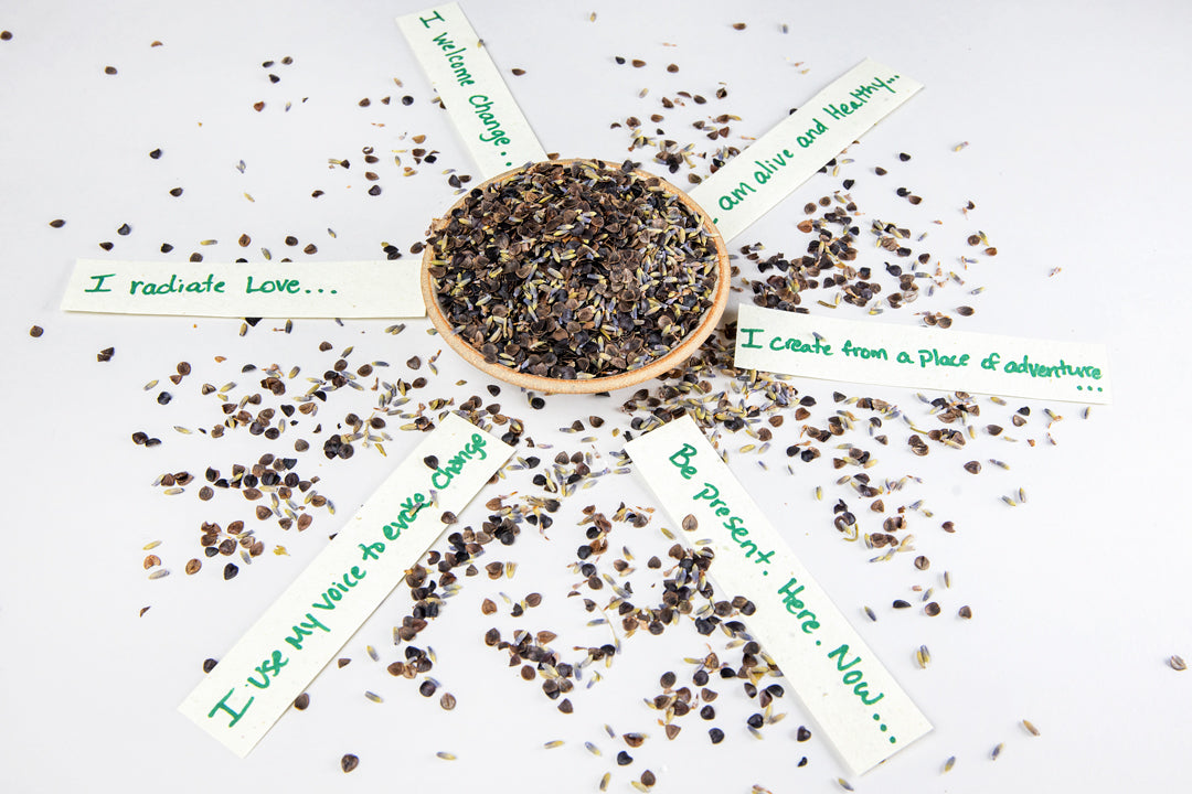 Customize your Bennd Pranayama Pillow with your own intentions. Handwritten on paper made from our recycled yoga mat fibers and placed into the pillow fill. You can set up to 3 intentions.